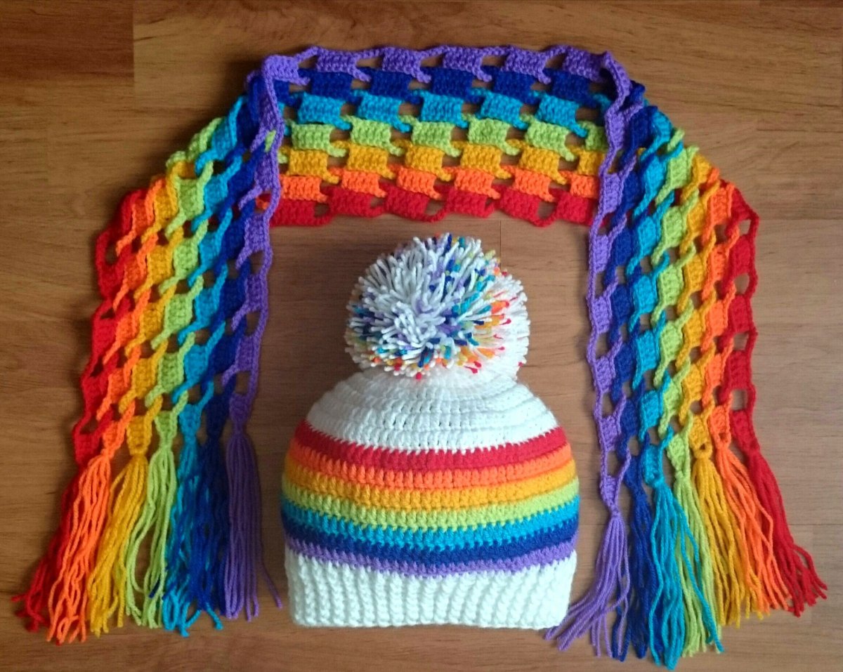 Разноцветная шапка крючком