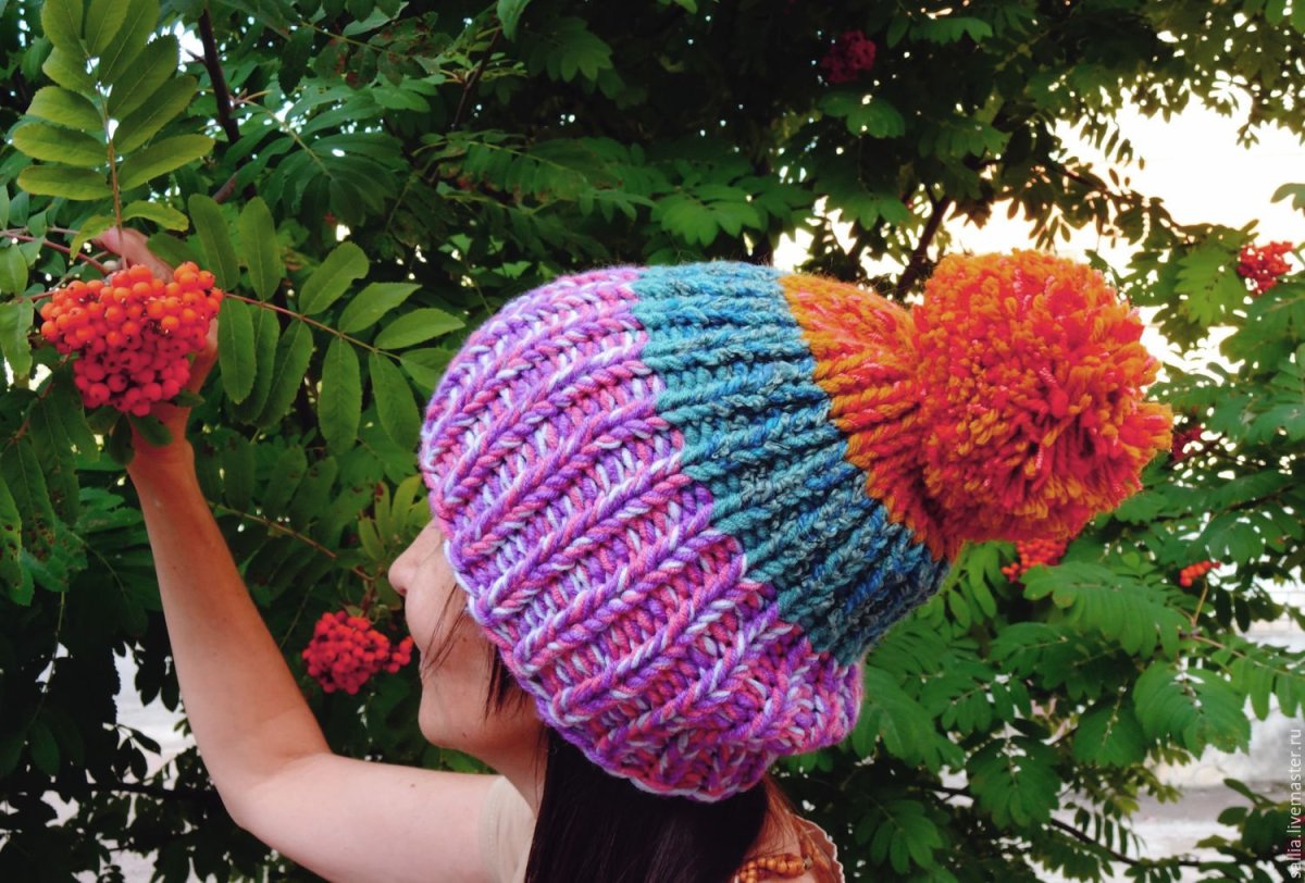 Шапки из многоцветной пряжи