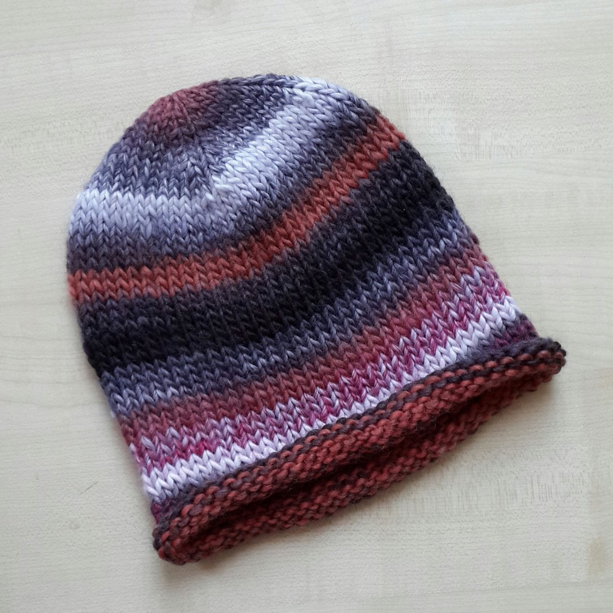 Шапка из секционной пряжи спицами