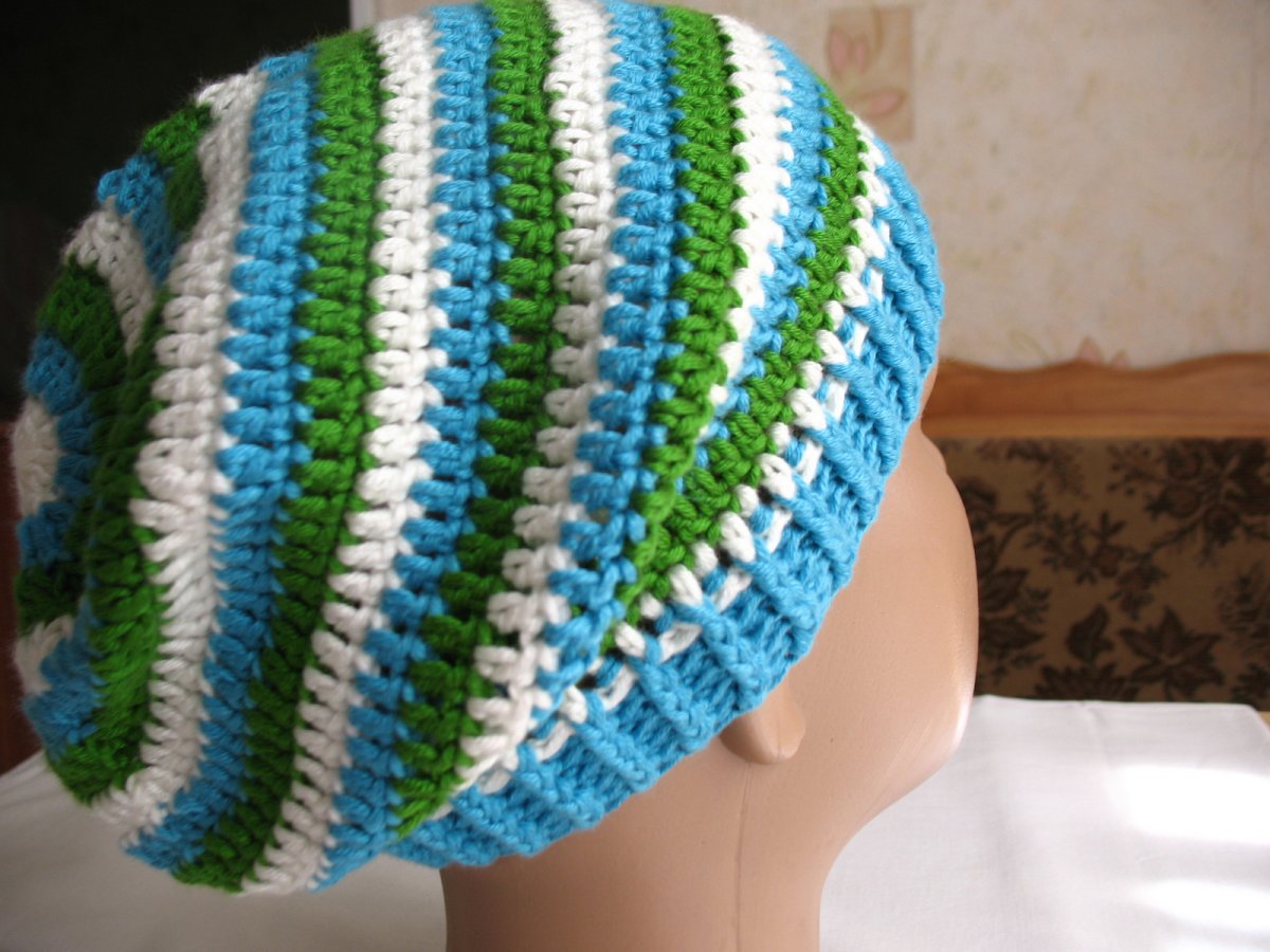 Полосатая шапка крючком