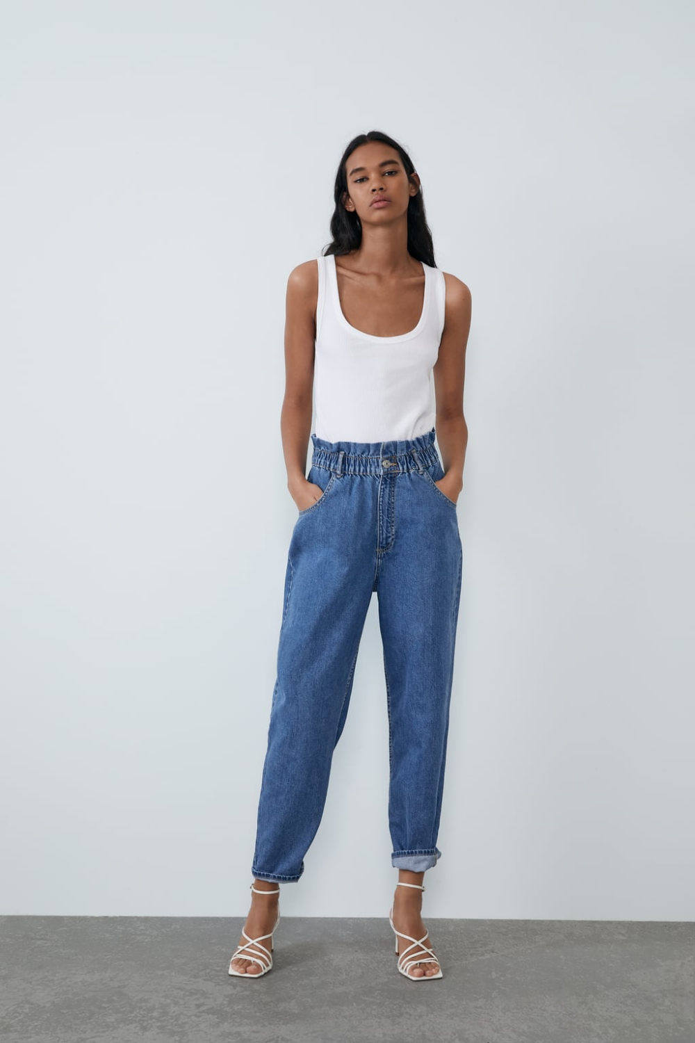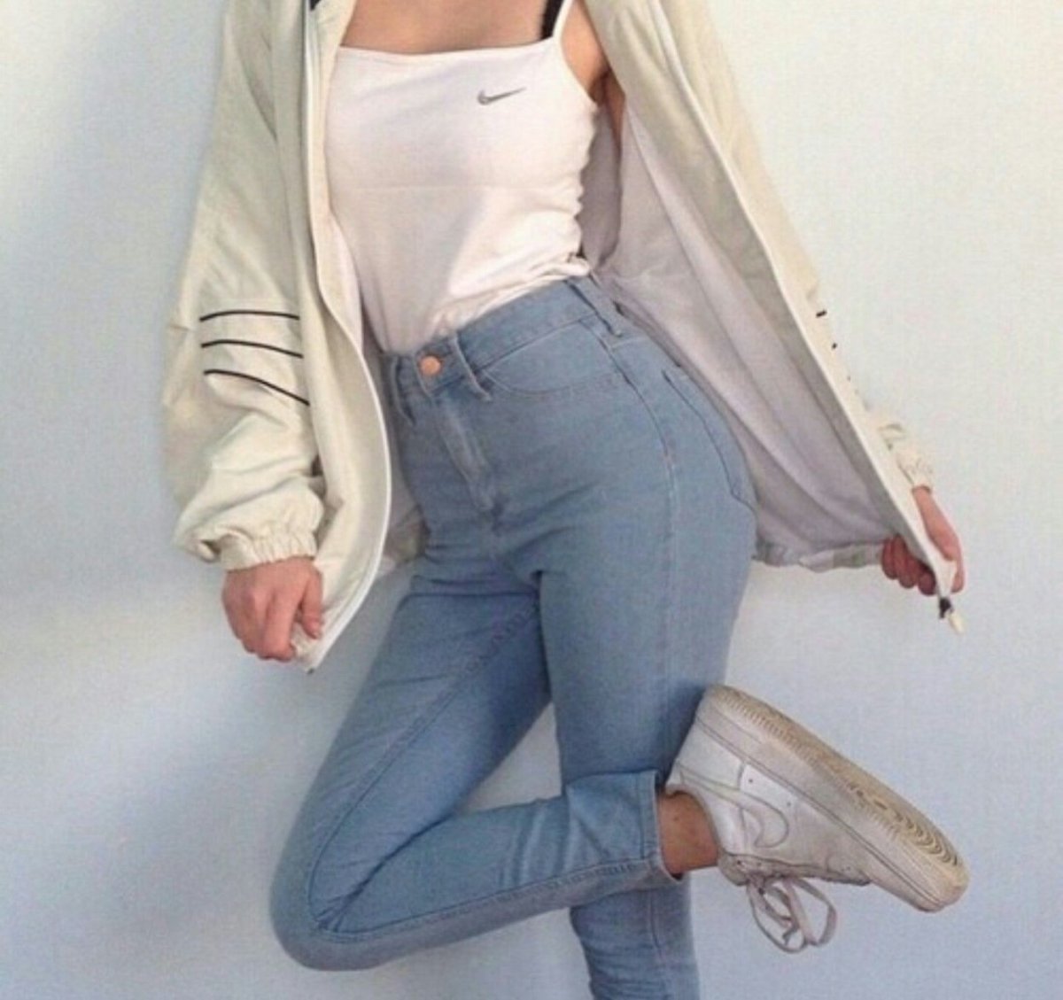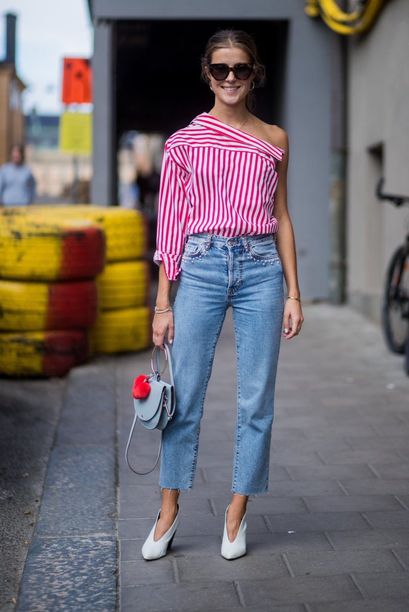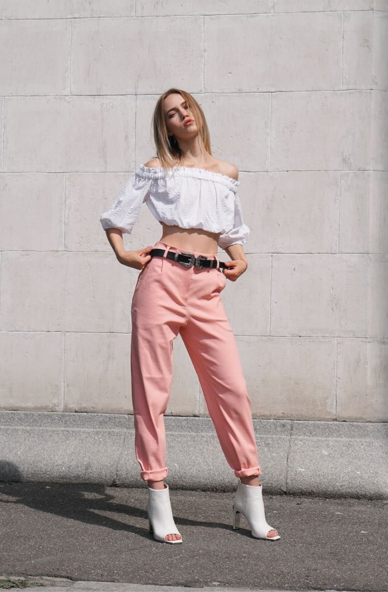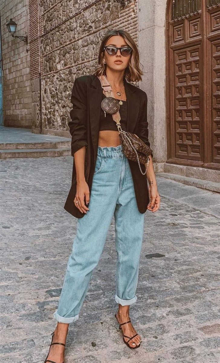 Топ с джинсами на высокой талии
