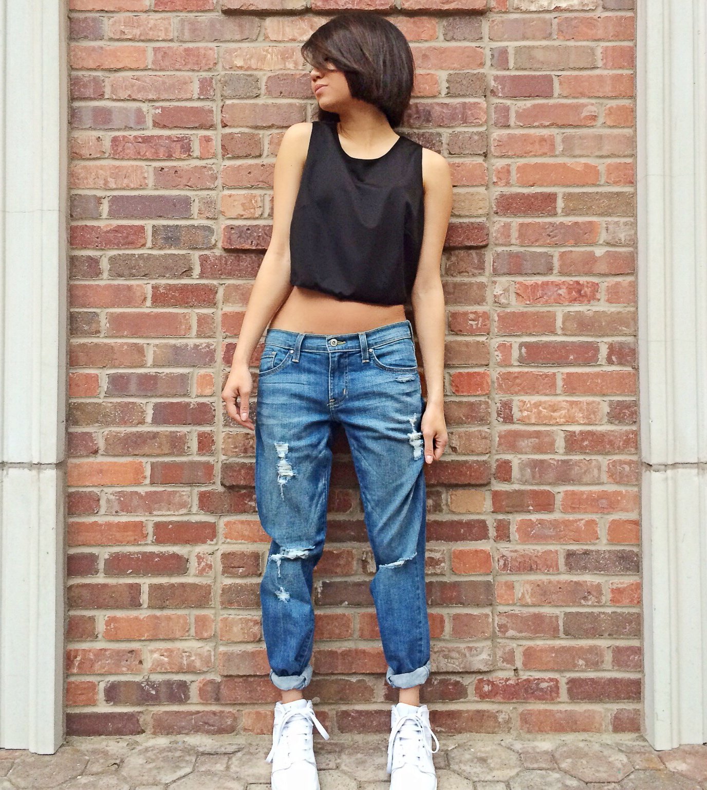 Короткий топ и джинсы
