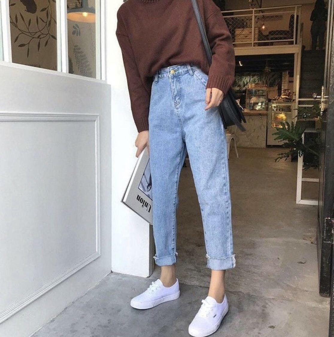Широкие джинсы женские лук