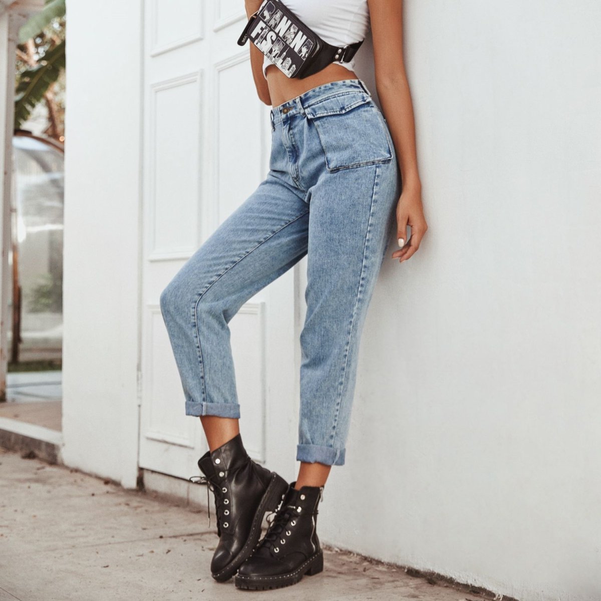 Джинсы багги образ