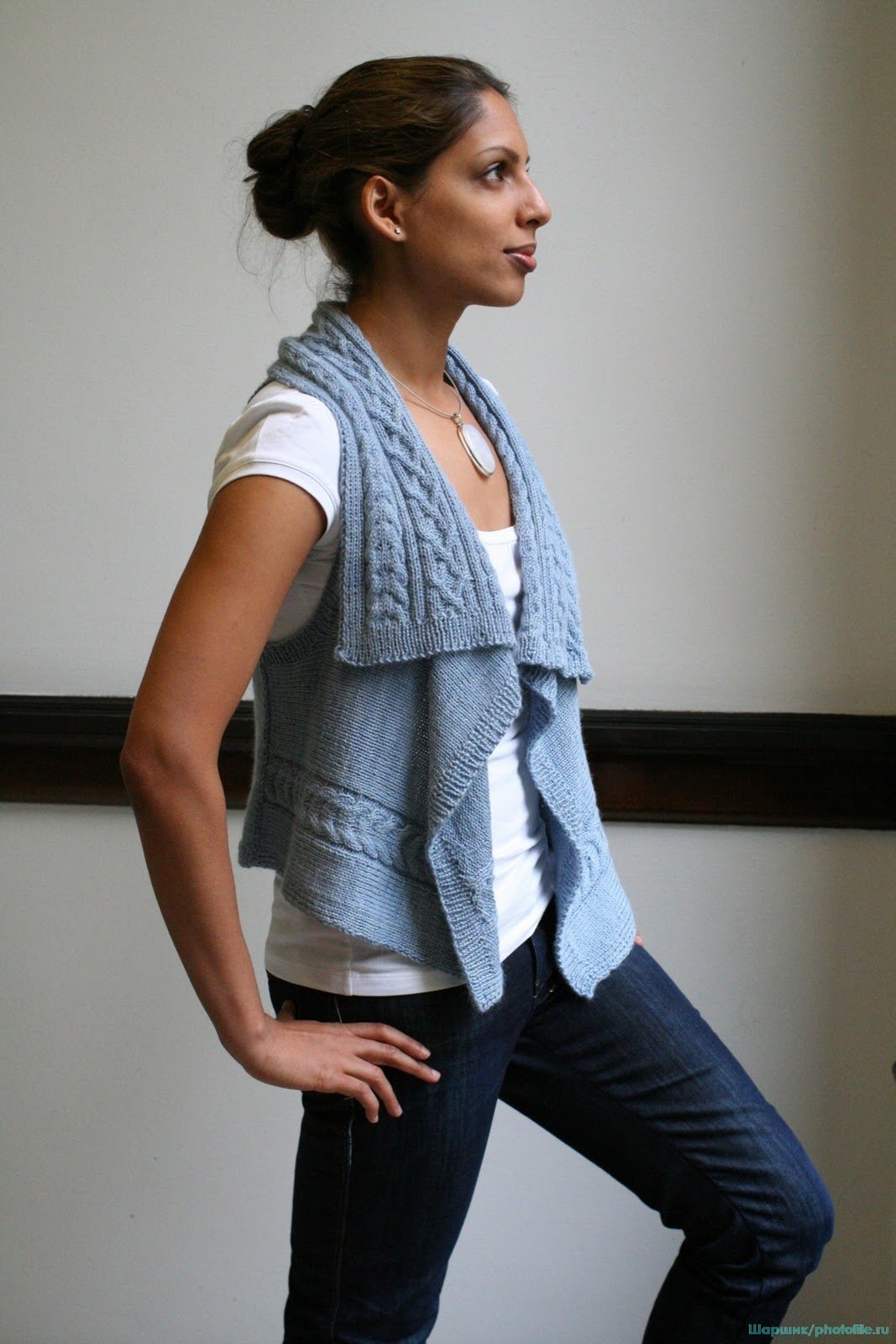Жилет трехцветный с воротником спицами