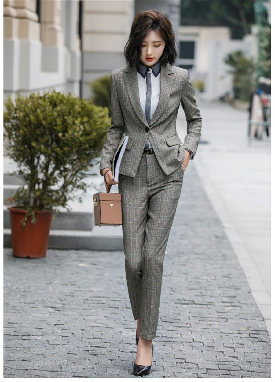 Деловой костюм клетчатый женский