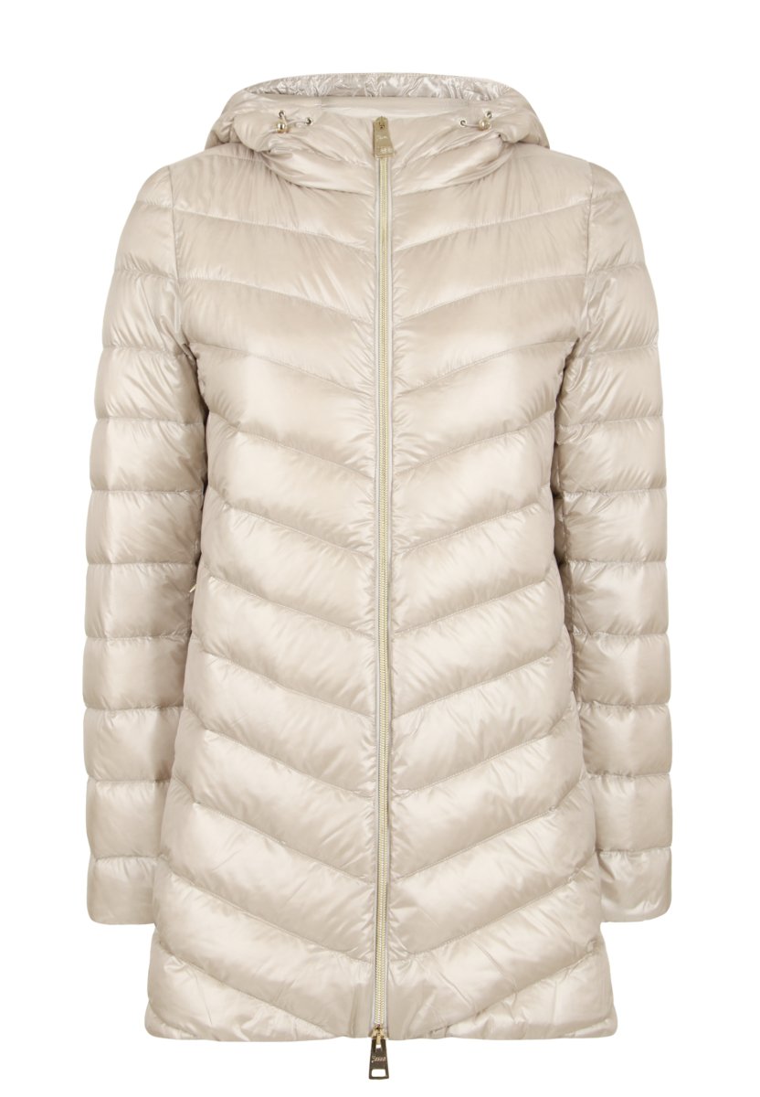 Пуховик женский бежевый с капюшоном