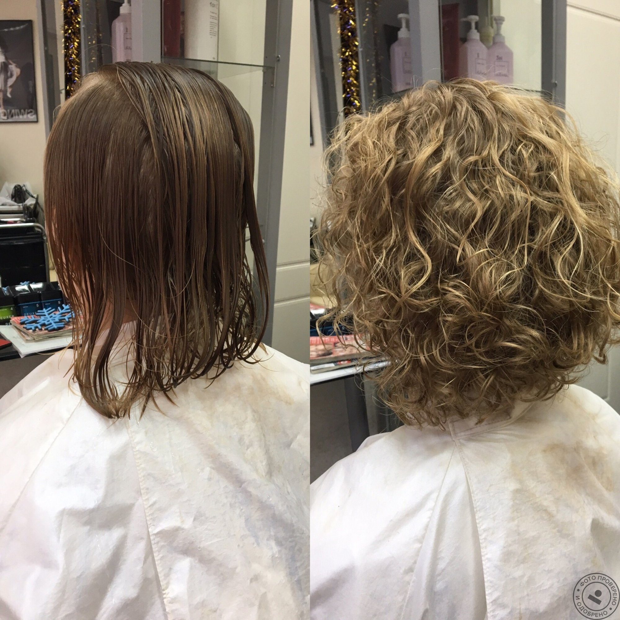 Биозавивка волос крупные Локоны на средние волосы до и после