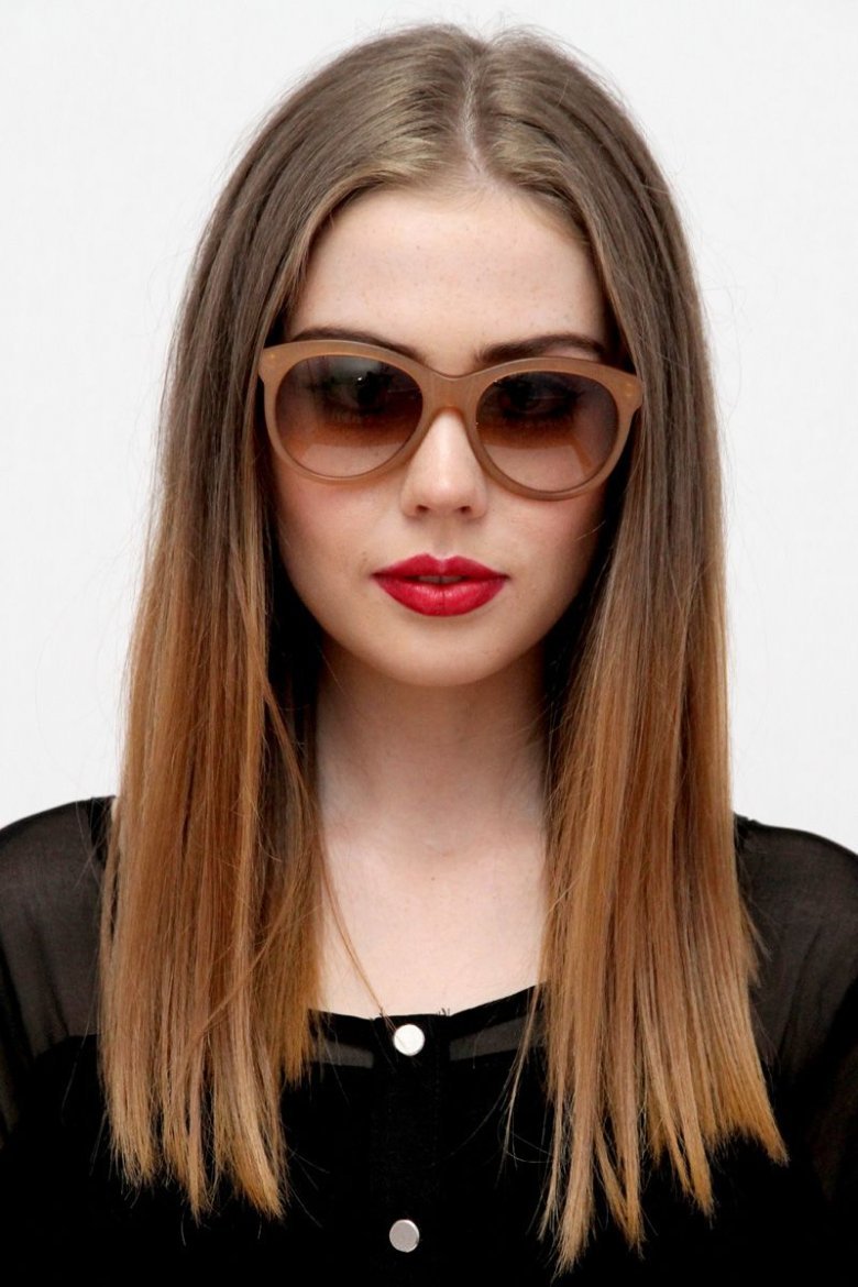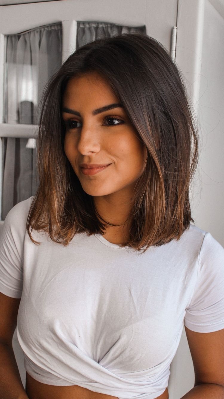 Стрижка с прямым срезом на средние волосы с омбре