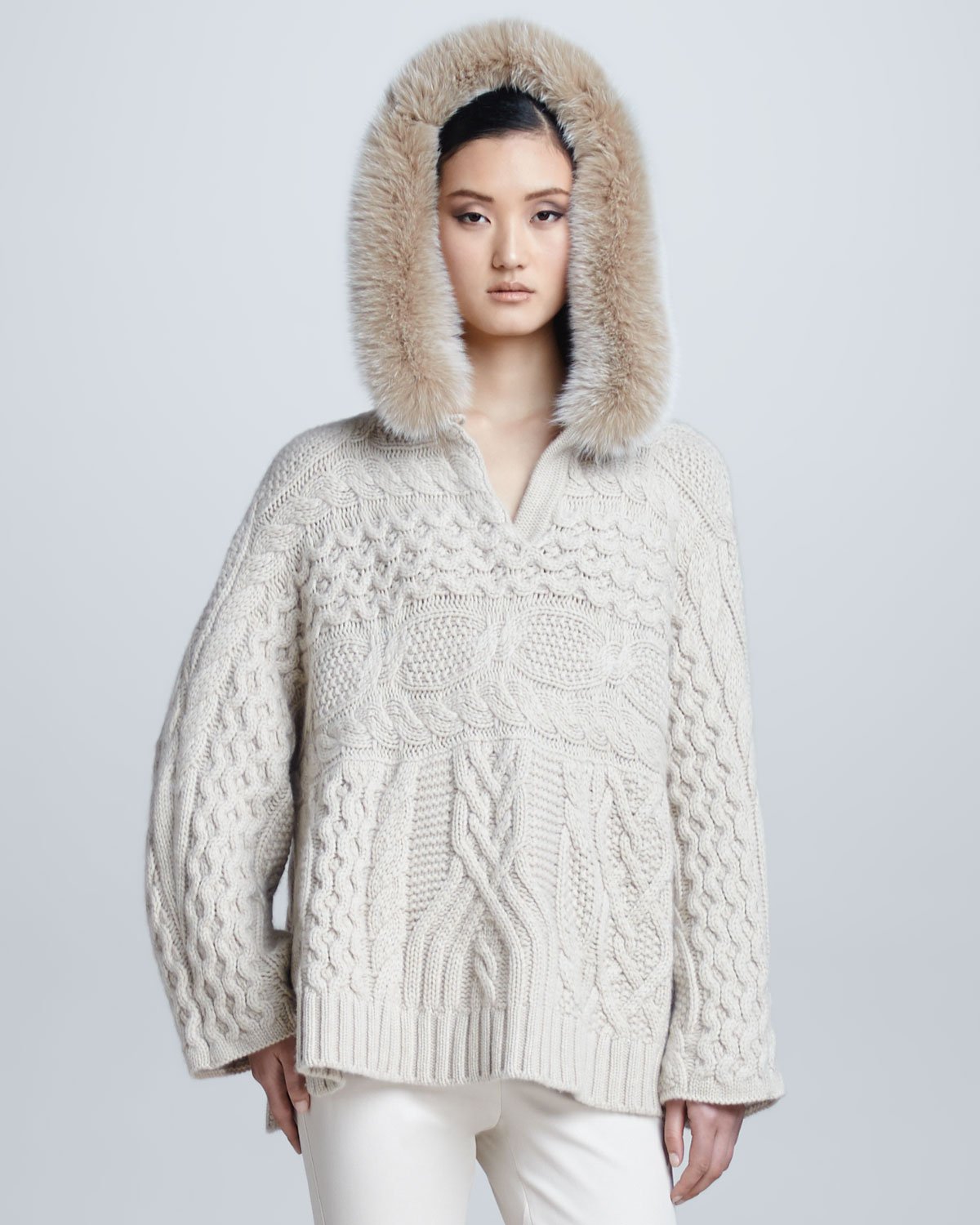 Вязаный кардиган с мехом