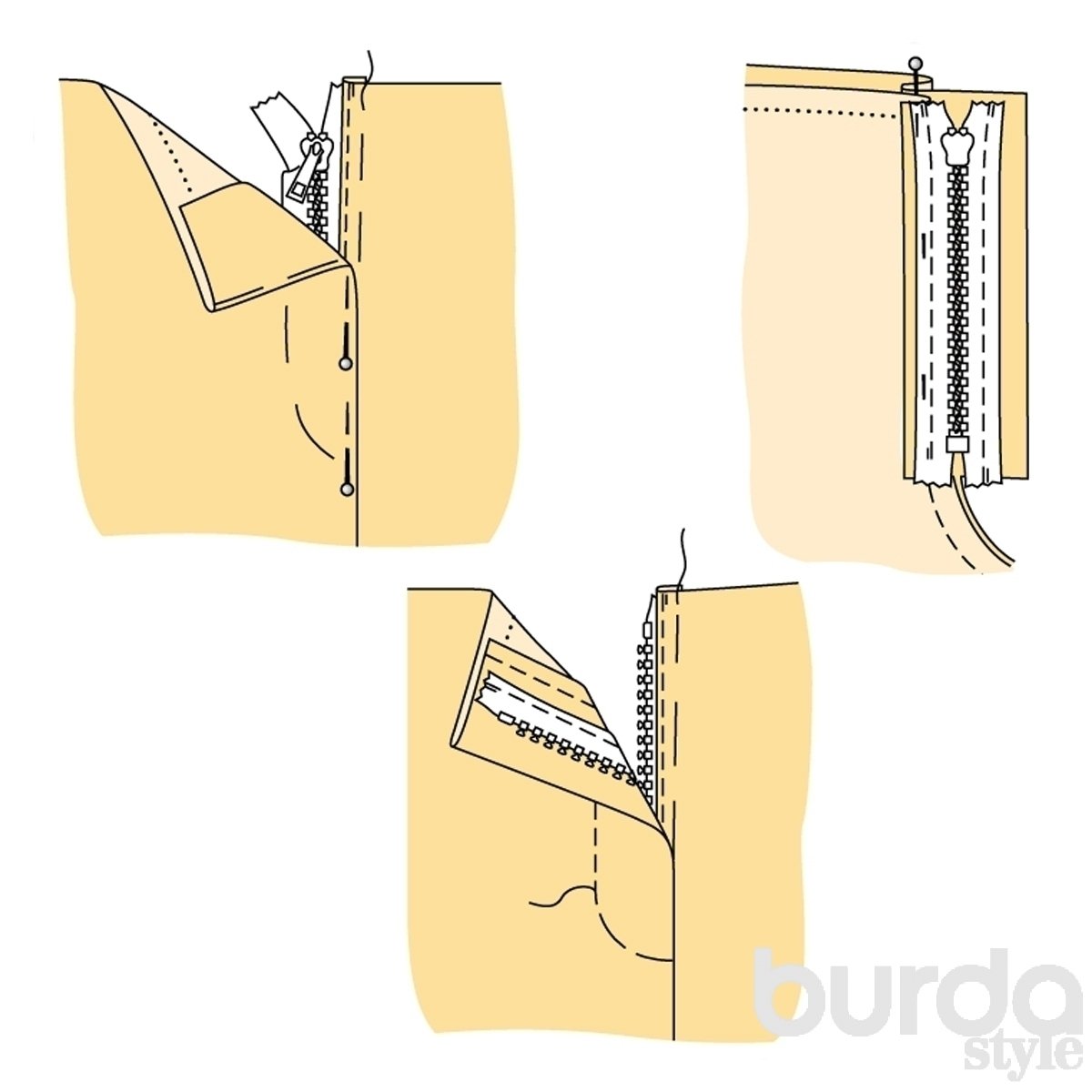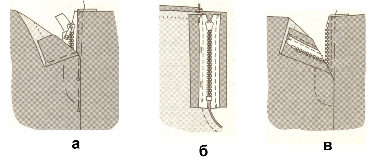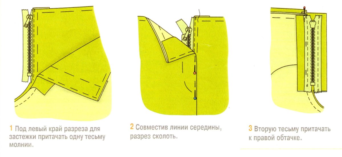 Схема притачивания потайной молнии