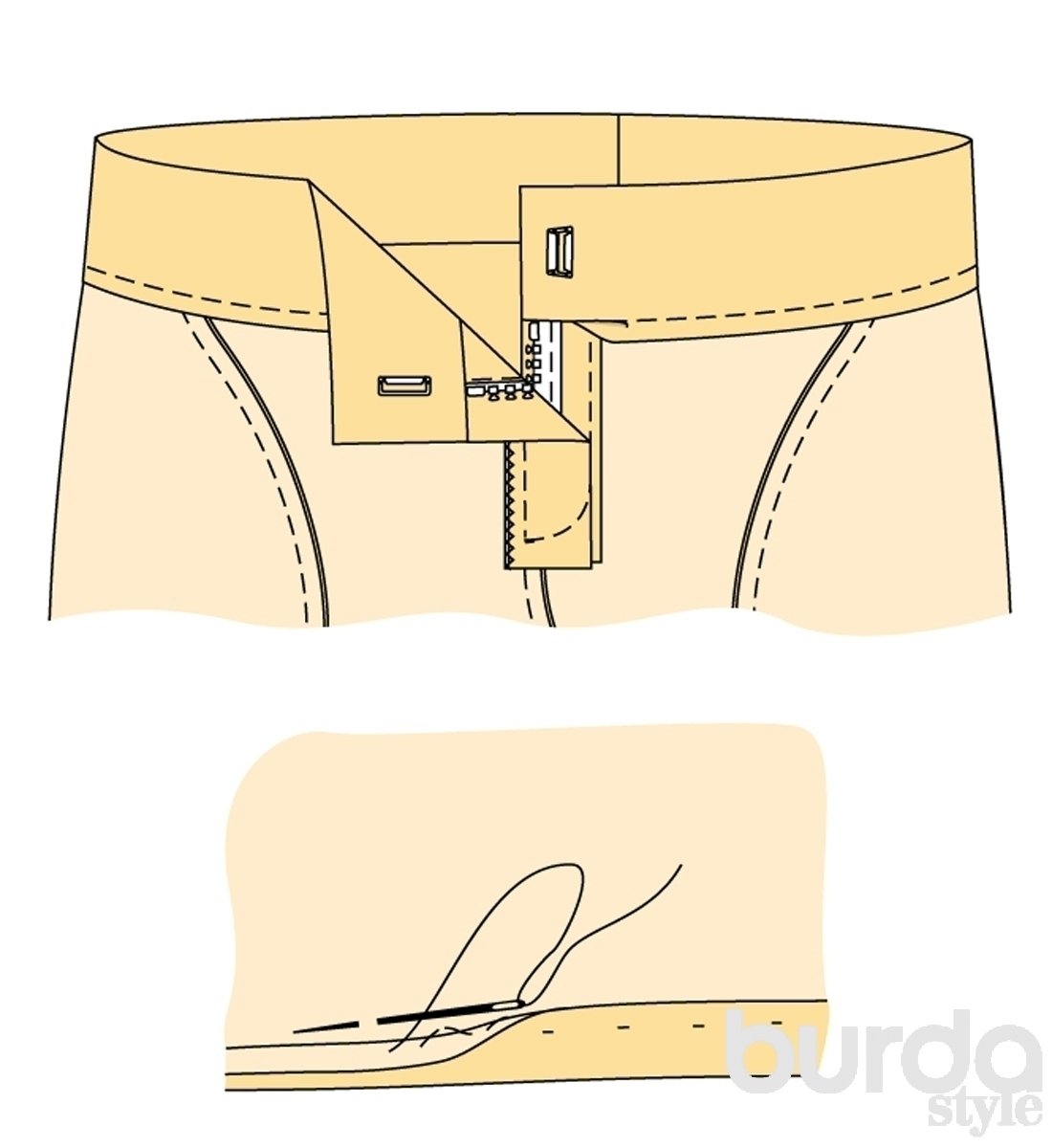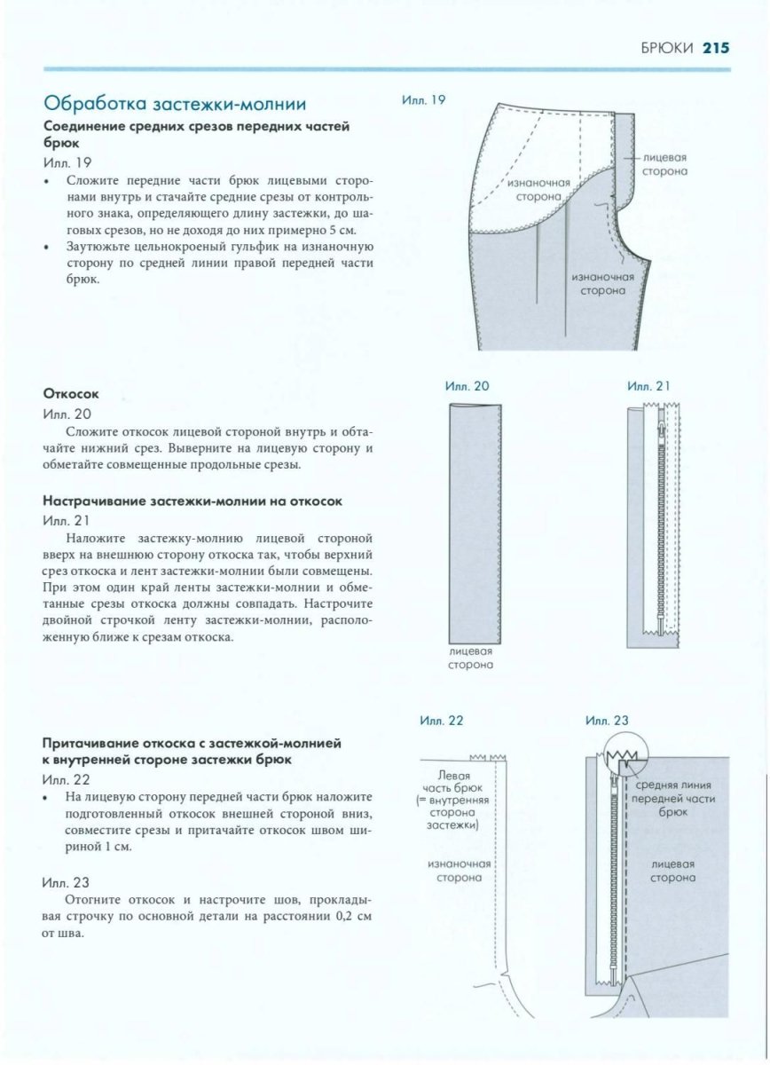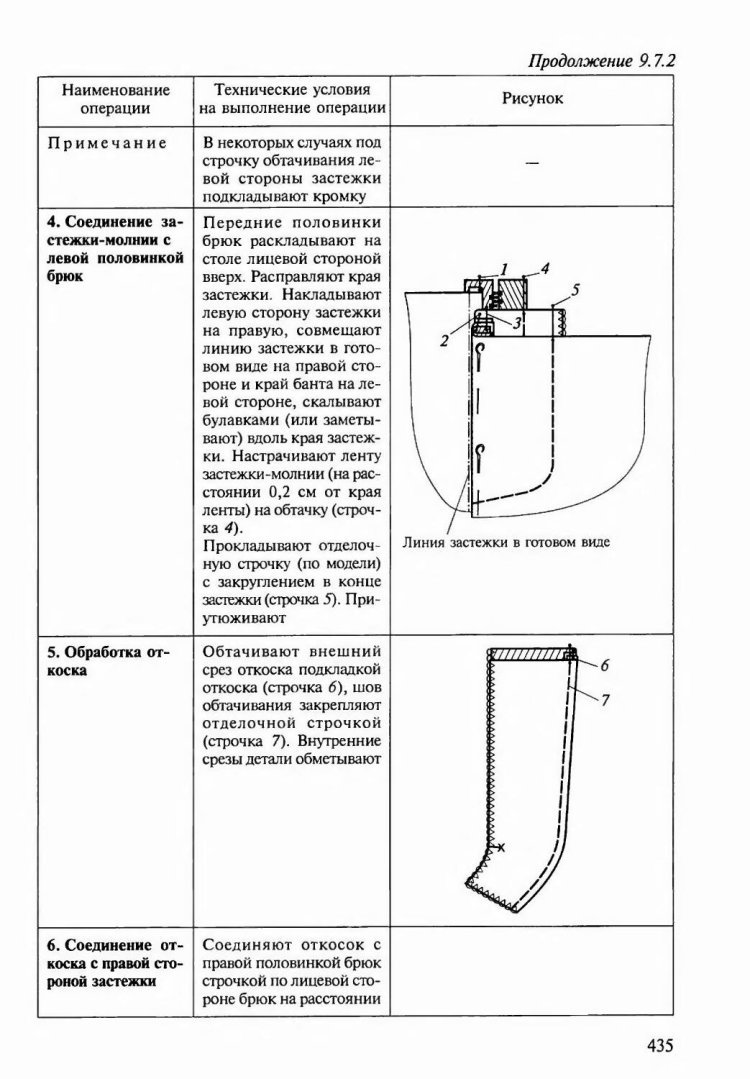 Схема обработки застежки брюк