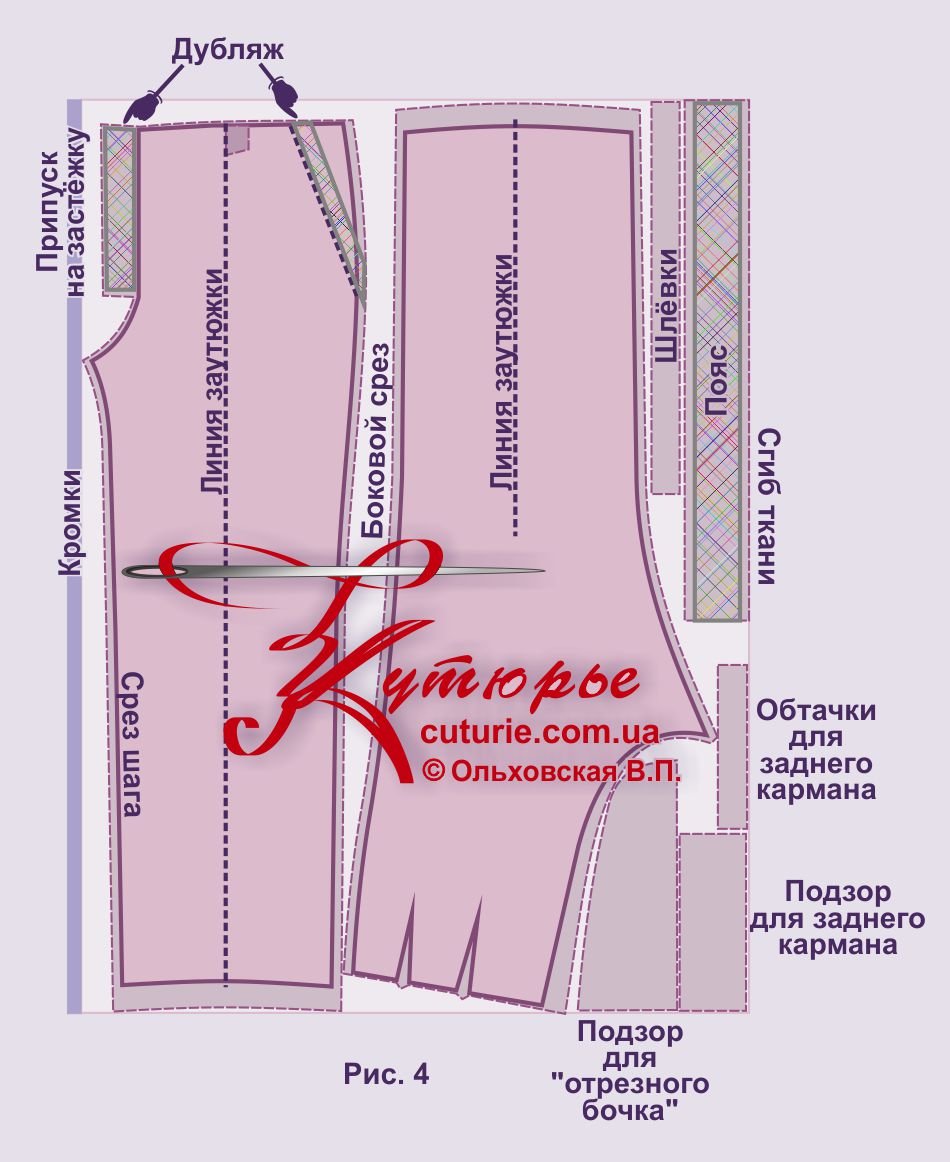Обработка застежки гульфик в женских брюках схема