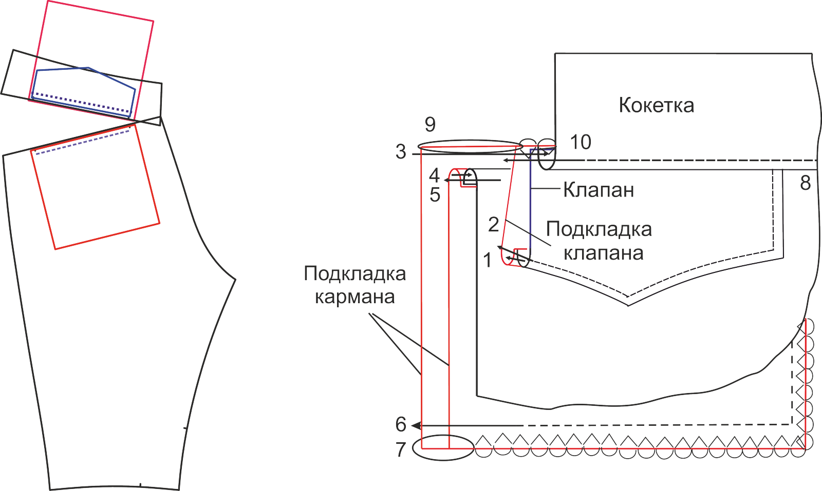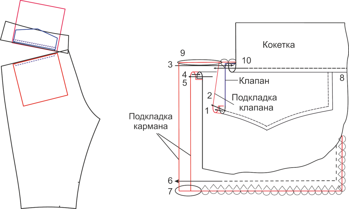 Карман с подкройным бочком схема