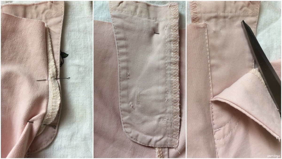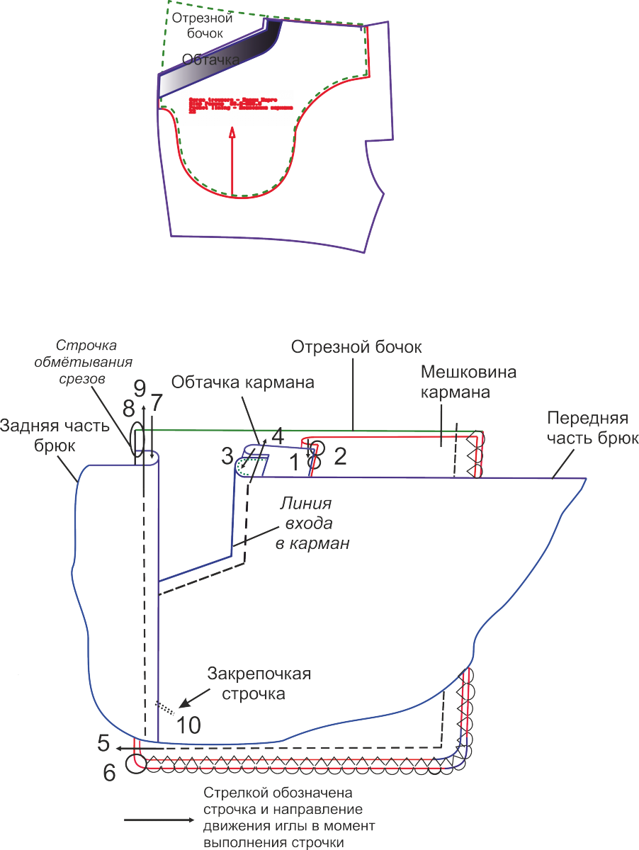 Обработка кармана в мужских брюках