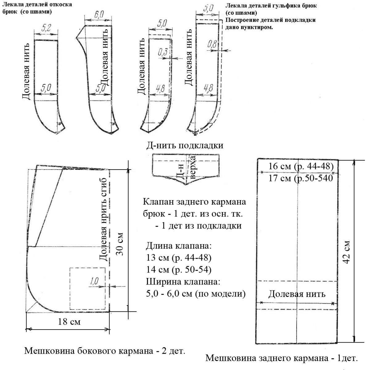 Выкройка гульфика и откоска на мужские брюки
