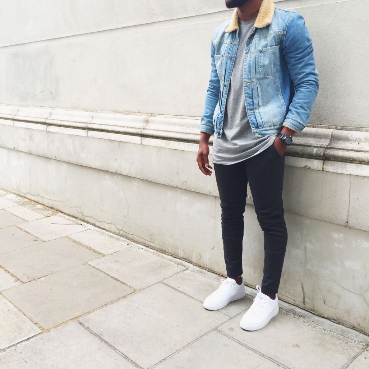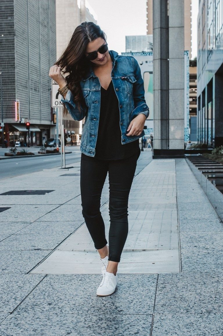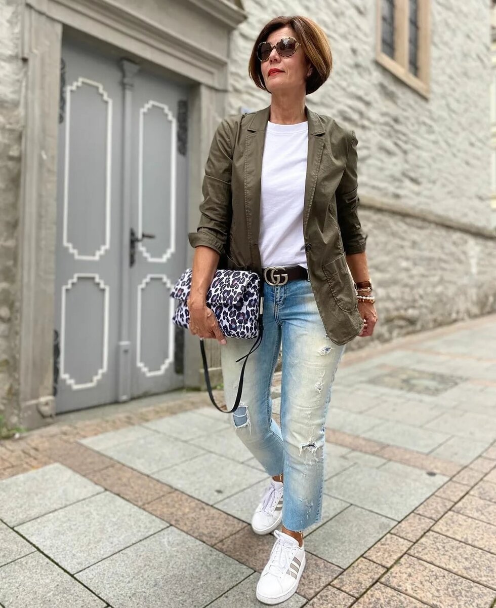 Жакет с джинсами и кроссовками