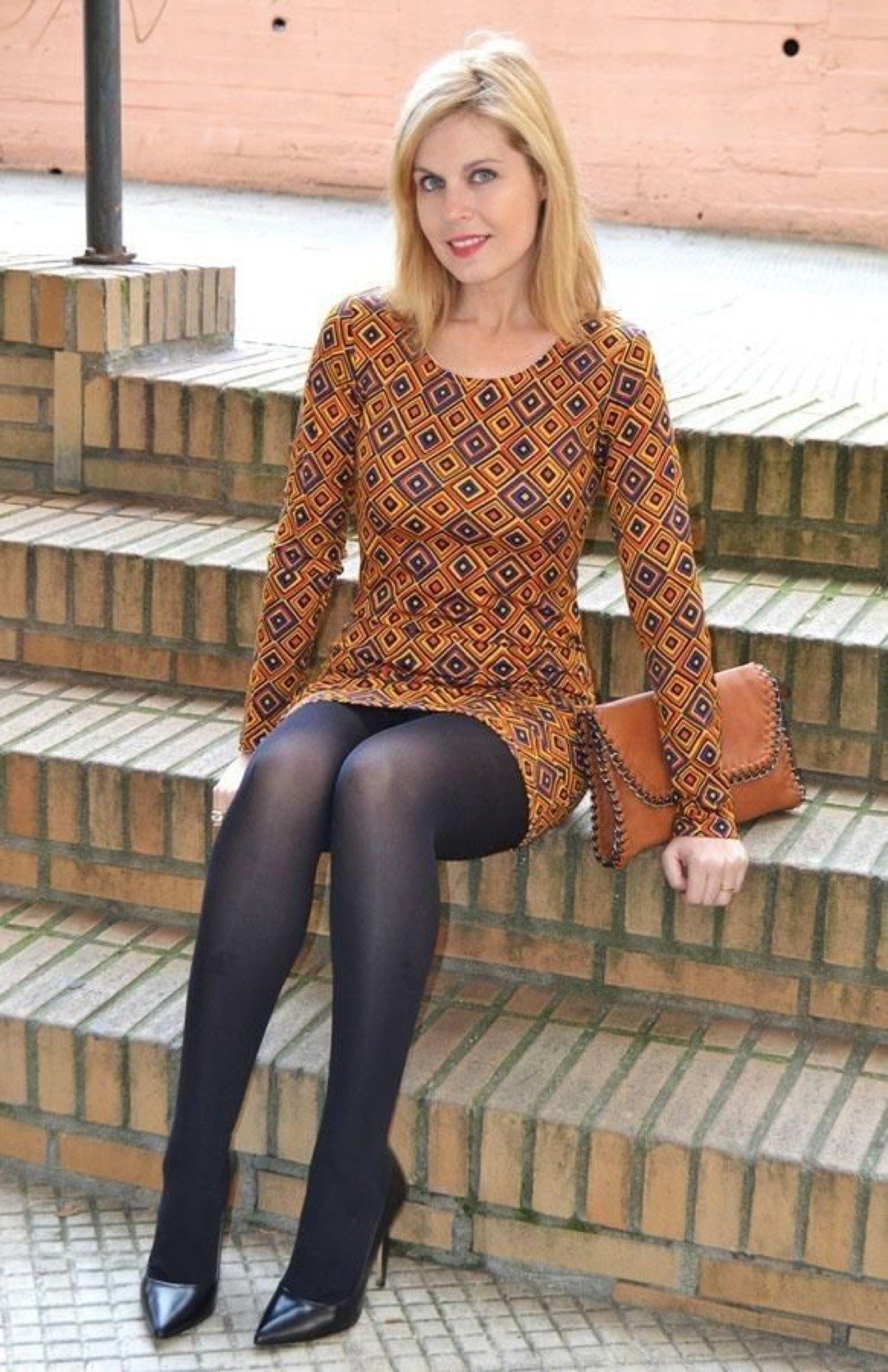 В обтягивающем платье и колготках