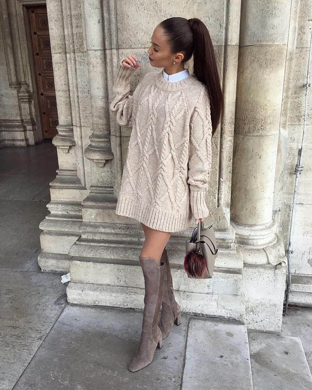 Теплые вязаные платья оверсайз