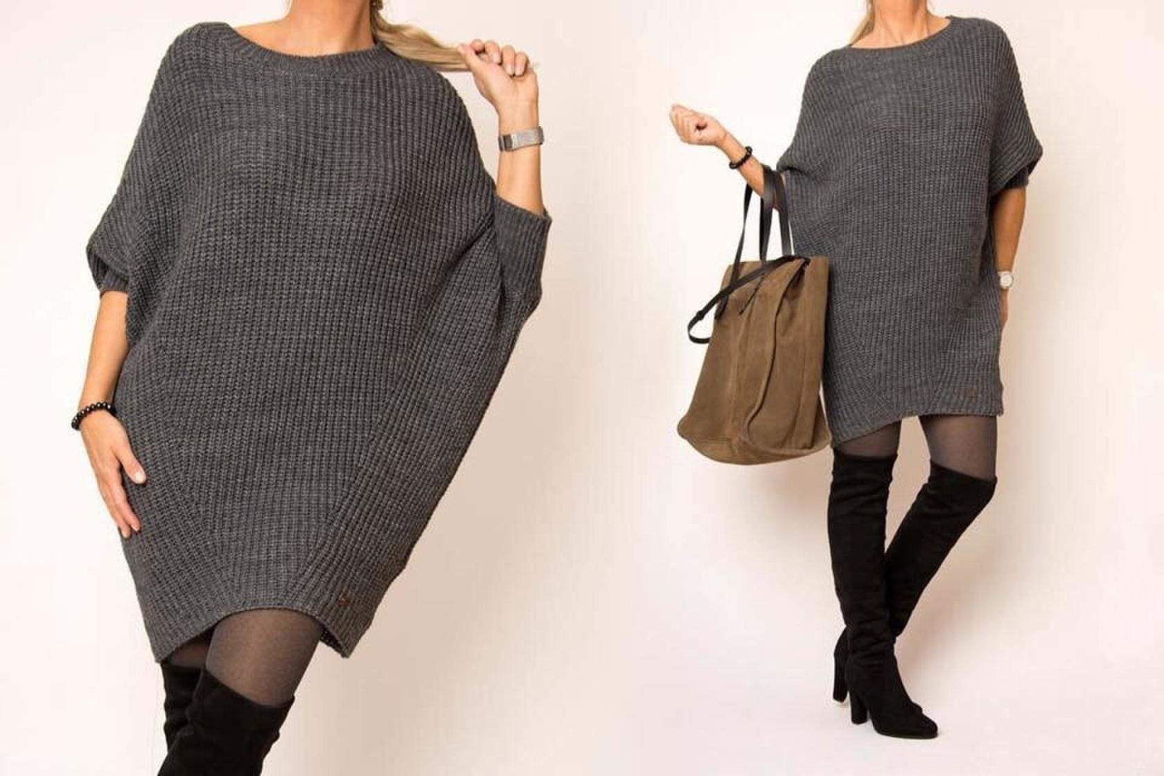 Платье вязаное спицами для женщин оверсайз