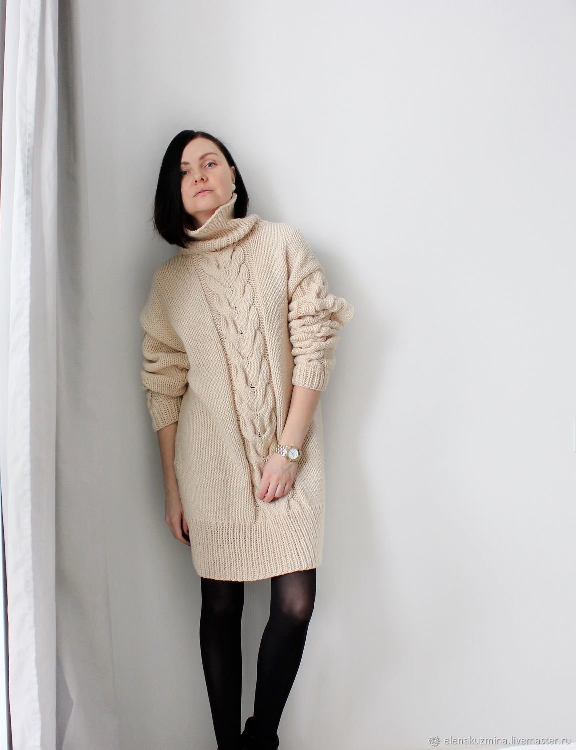 Платье-свитер оверсайз спицами