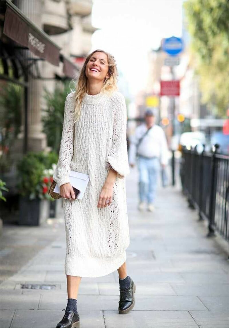 Белое вязаное платье оверсайз