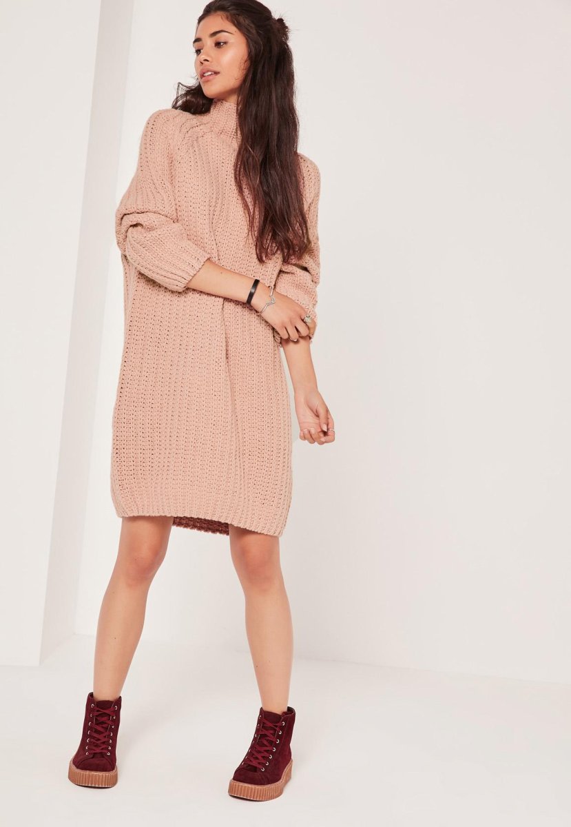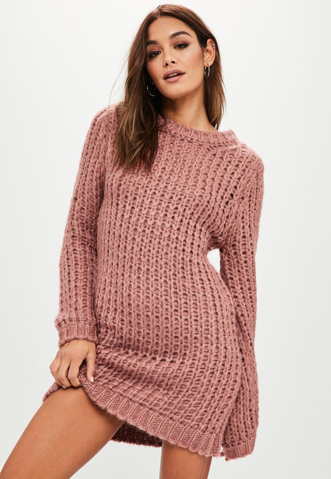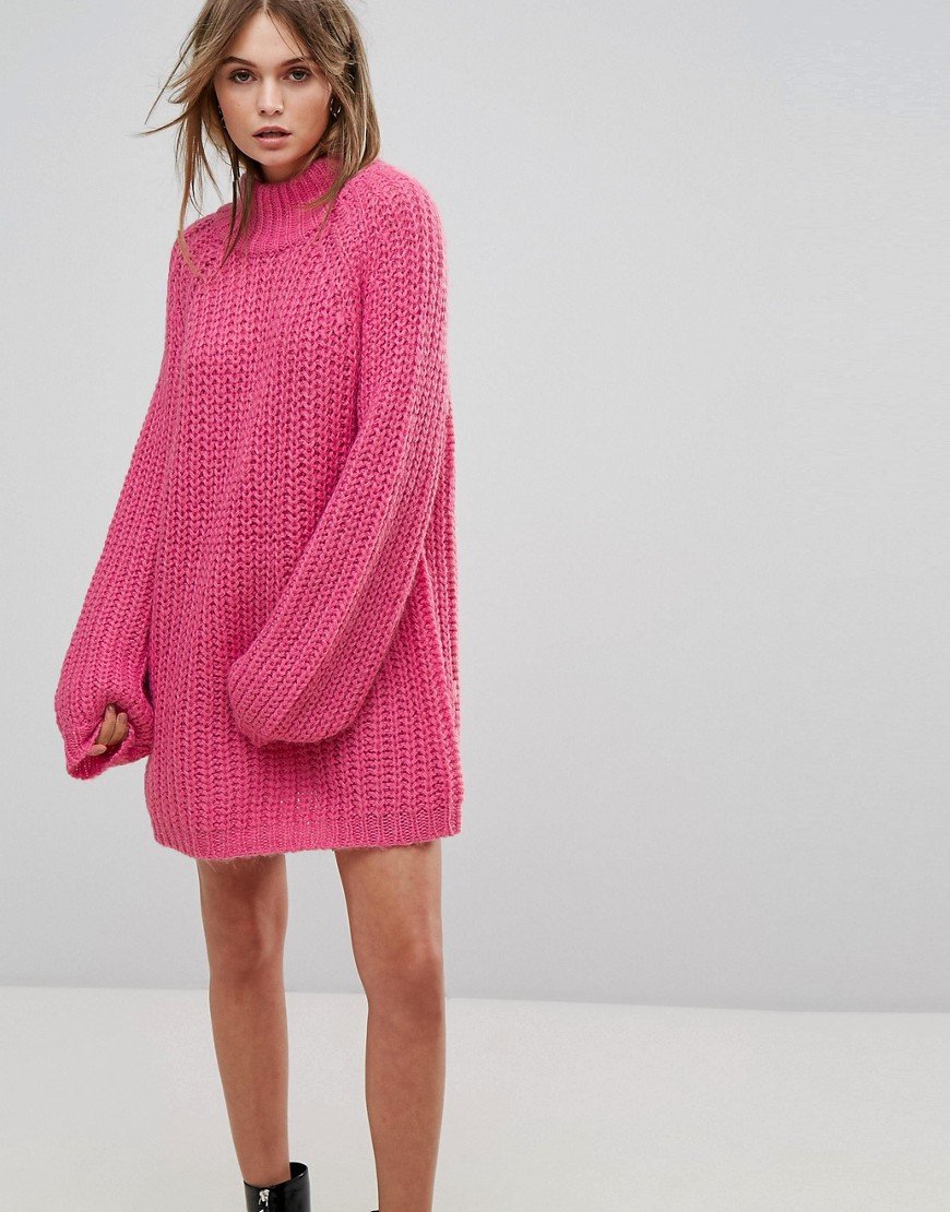 Свитер-платье оверсайз розовое
