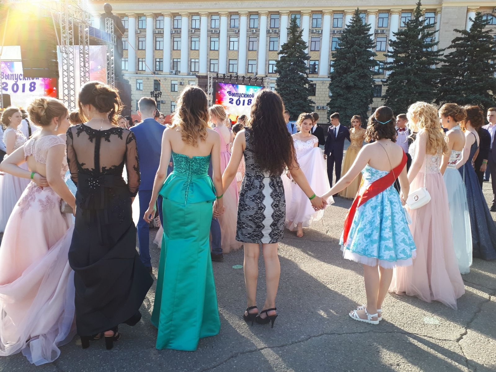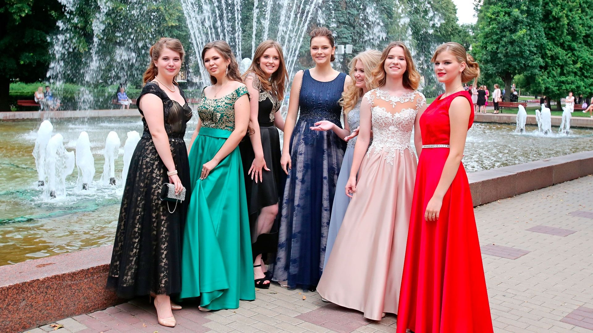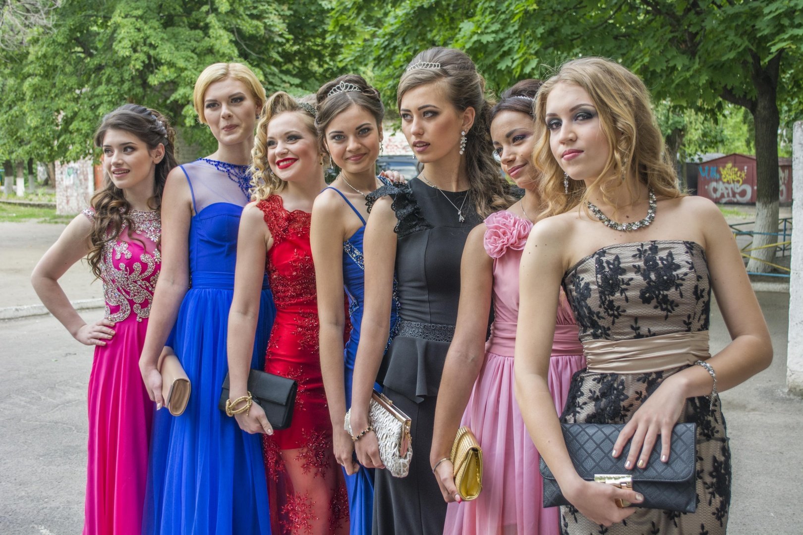 Выпускницы в красивых платьях