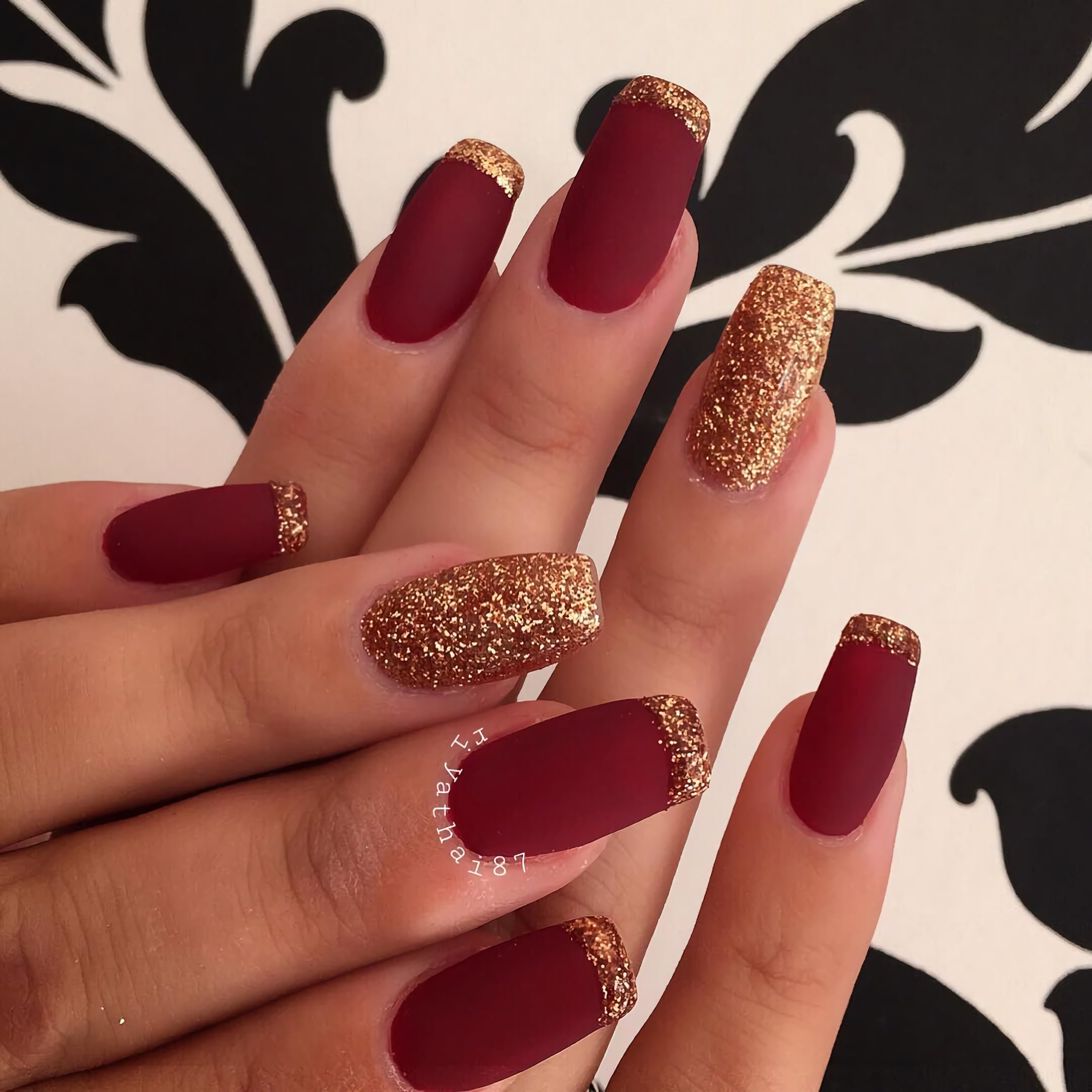 Ногти бордовые с золотом