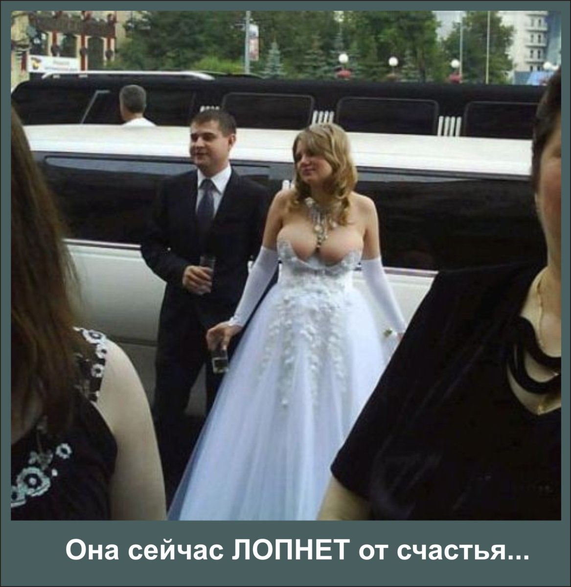 Смешное свадебное платье грудь