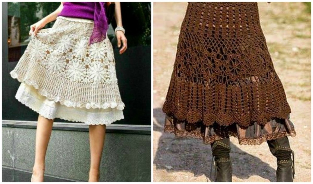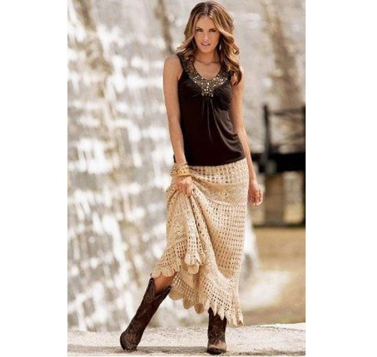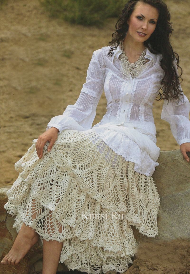 Вязаные длинные юбки крючком со схемами и описанием для женщин