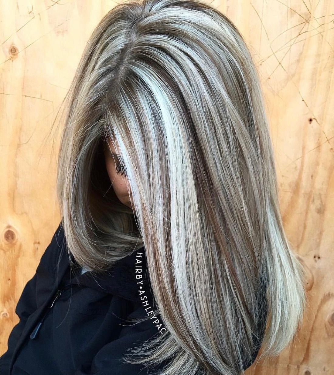 Мелирование с пепельным оттенком на средние волосы Каскад