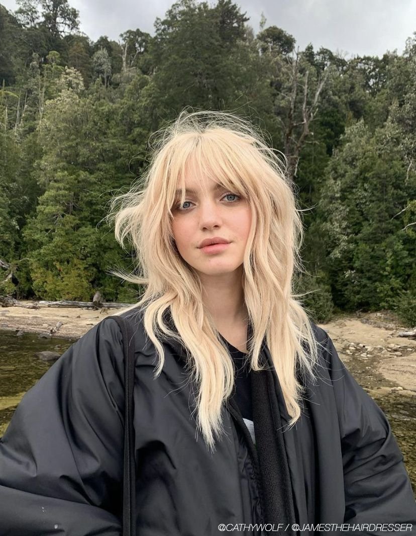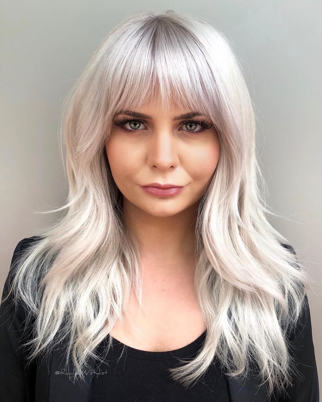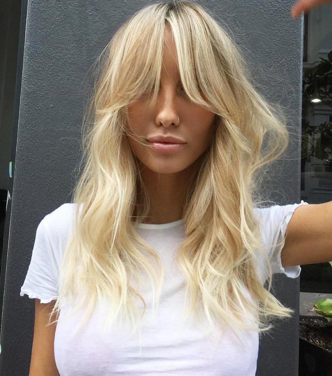 Стрижки на длинные волосы блонд с удлиненной челкой